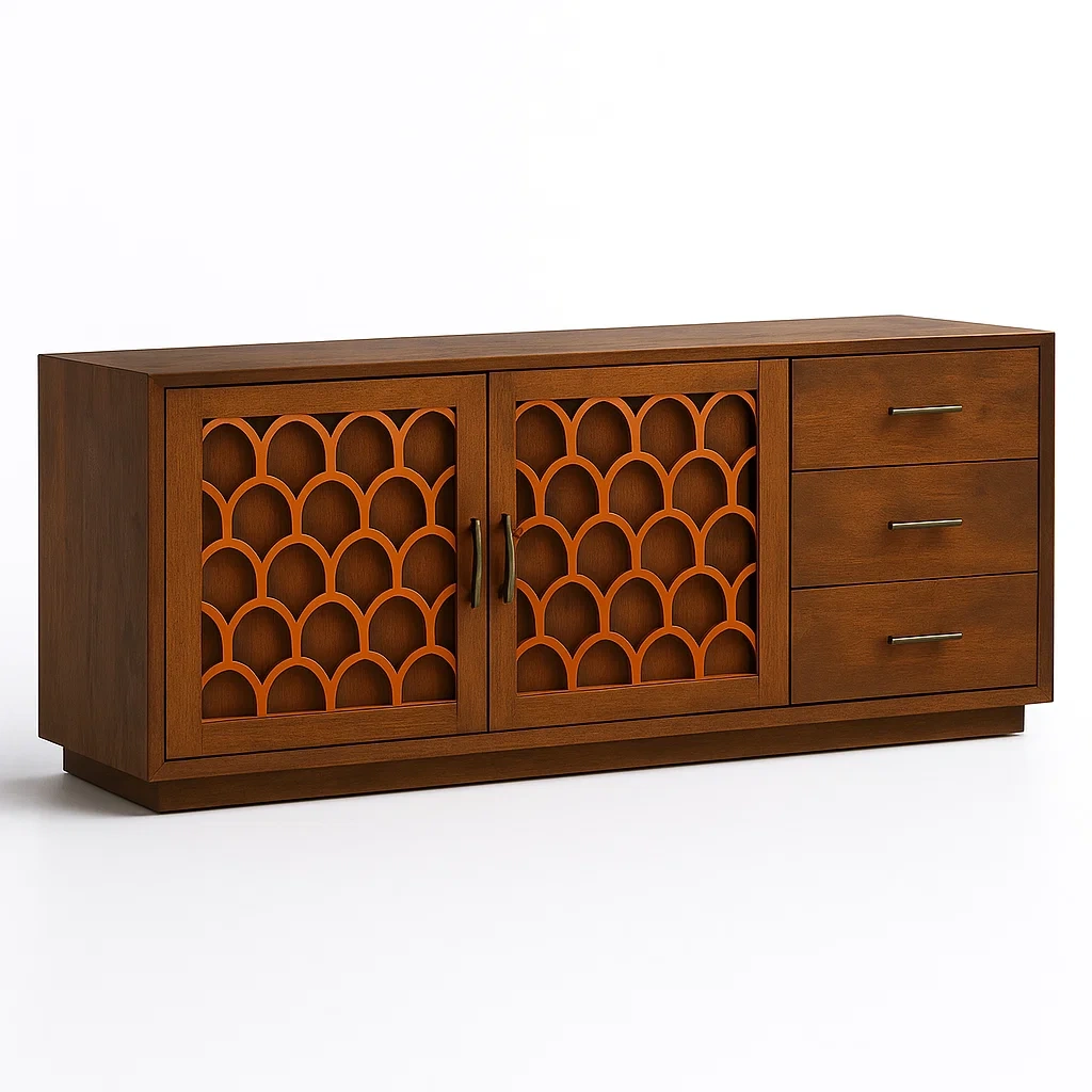 Buffets en bois massif avec portes à motifs et trois tiroirs