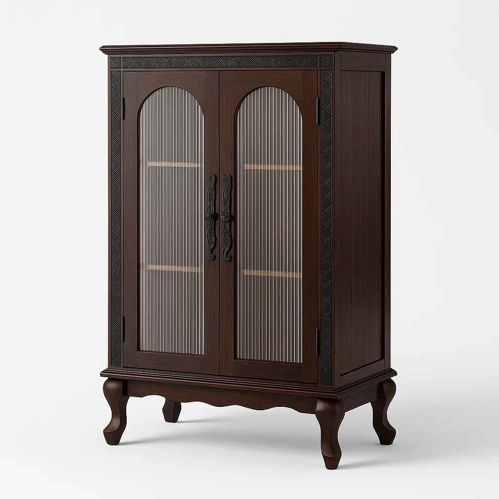 Vitrines en bois et verre cannelé avec étagères et double porte