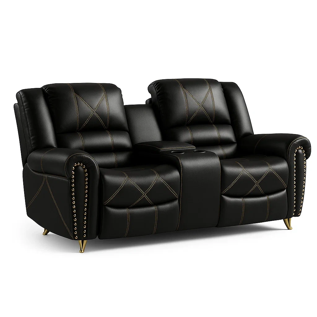 Structure : Design contemporain avec rivets décoratifs et coutures contrastées ; canapé deux places avec porte-gobelets intégrés.