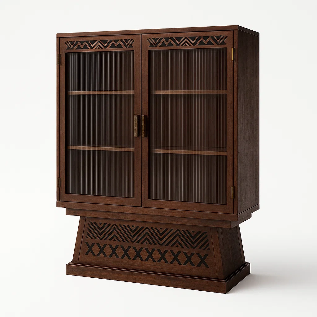 Vitrines en bois avec portes en verre strié