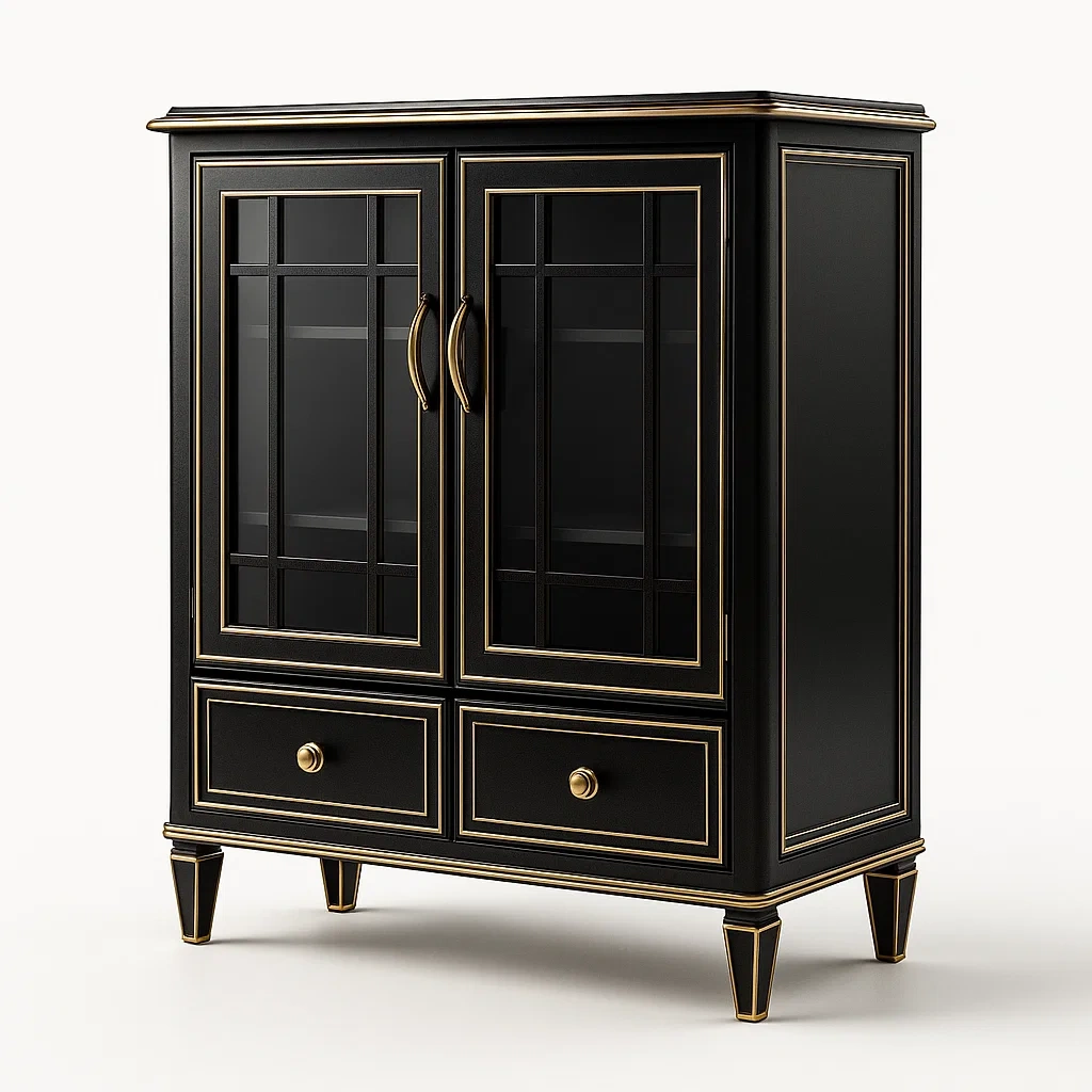 Matériau : MDF avec finition noire, verre trempé 5 mm pour les portes.